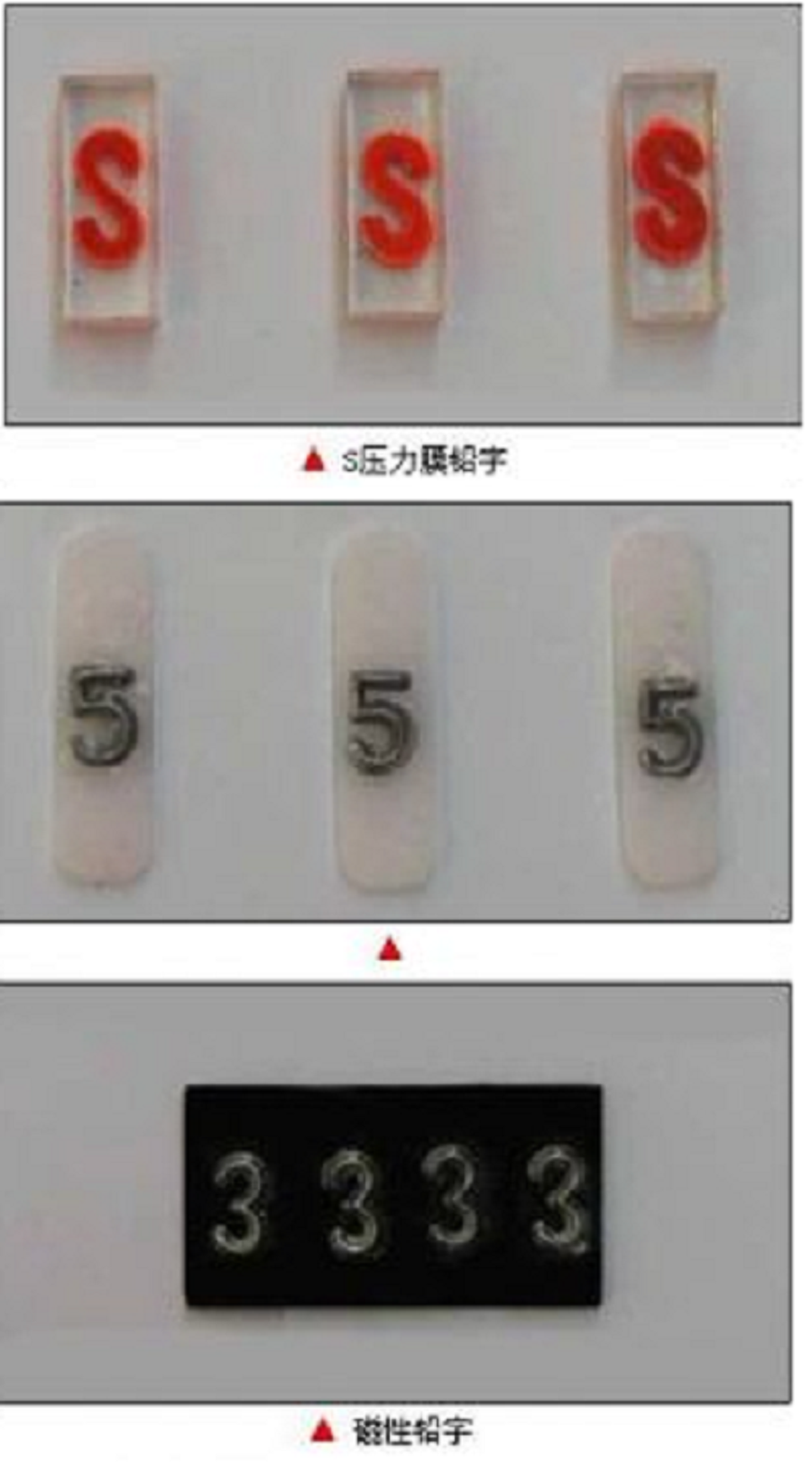 2、種類:0-9數字鉛字、A—Z字母鉛字、中心標記、搭接標記、減號、加號、年、月、日、返修標記等。