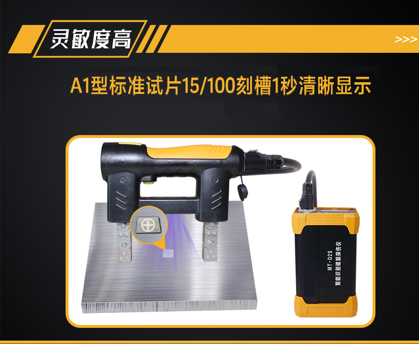 1、靈敏度:A1型標(biāo)準(zhǔn)試片15/100刻槽顯示清晰,符合國(guó)家標(biāo)準(zhǔn);
