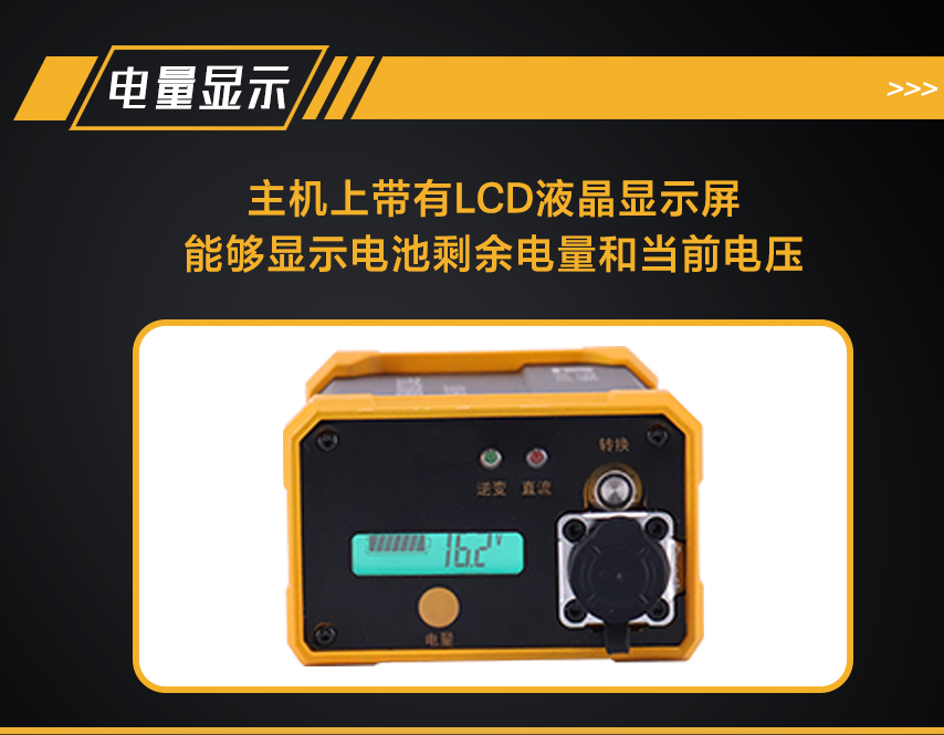 (3)主機(jī)上帶有LCD液晶顯示屏能夠顯示電池剩余電量和當(dāng)前電壓,每塊電池上也帶有電量指示,隨時(shí)掌握剩余電量確保工作時(shí)間;