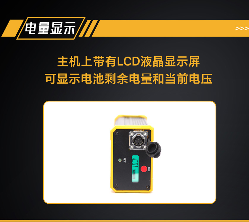 (3)主機(jī)上帶有LCD液晶顯示屏能夠顯示電池剩余電量和當(dāng)前電壓,每塊電池上也帶有電量指示隨時(shí)掌握剩余電量確保工作時(shí)間;