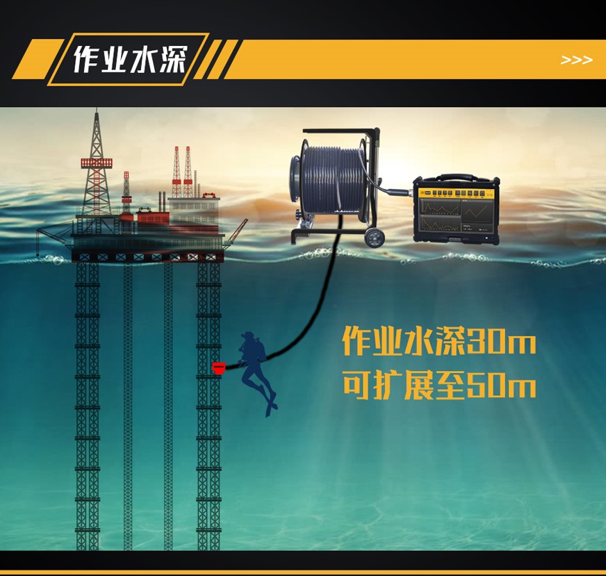 3、可檢測表面 350℃高溫中的非疲勞裂紋;可用于水下500m 深度結構缺陷檢測;